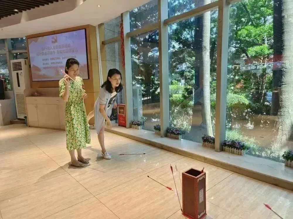 活动还邀请到了区慈善总会会员单位奇志口腔为大家开展免费口腔检查诊治,耐心讲授口腔保健、日常牙齿保护及口腔疾病预防等方面知识,暖心义举受到大家一致“点赞”。最后,活动还特地准备了端午投壶赢礼品环节,大家踊跃参与,积极尝试,在体验投壶游戏中感受中华传统文化的魅力,增强了对传统节日文化的认同感和归属感。