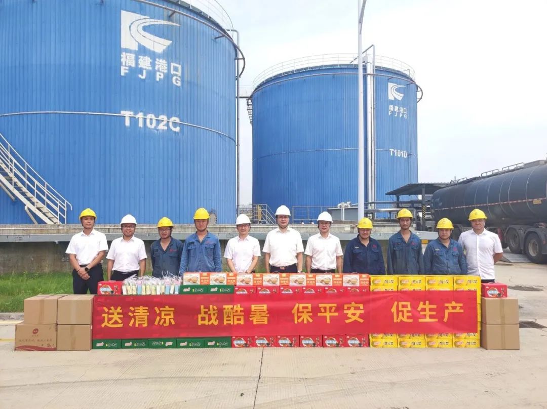 朱勇进深入泉州新立基沥青加工基地一线职工作业现场,实地察看了库区生产作业环境和防暑降温措施的落实情况,看望慰问坚守在一线岗位的职工,为他们送上夏日清凉包及防暑降温饮品,叮嘱大家要在酷暑中注意自身安全,注意劳逸结合,在保障自身安全和健康前提下完成生产任务。