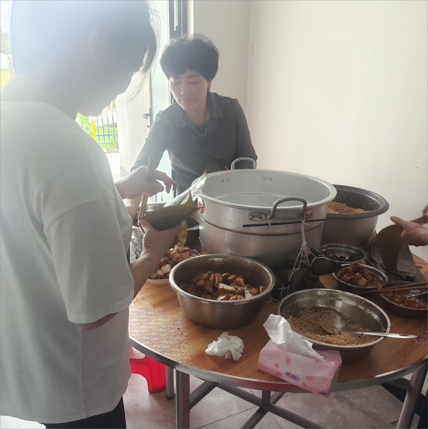 活动现场,粽叶飘香,气氛热烈,虽然包粽子的技术不大娴熟,但参与活动的热情让大家都迫不及待一展身手,裹粽叶、填糯米、放馅料、绕绳束扎,大家互相学习互相教学,欢声笑语不断,在感受浓浓节日气氛的同时,也展现出同事间和谐融洽、互助向上的风采。