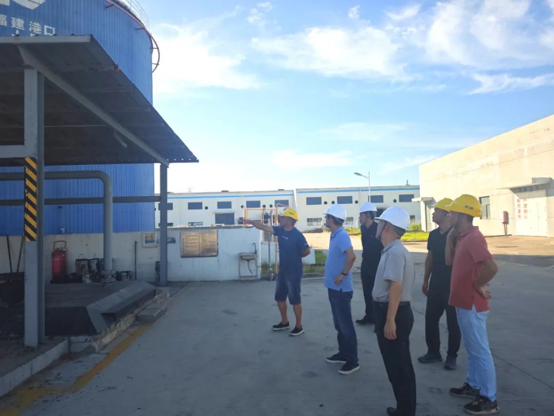 英国威廉集团官网副总经理吴稼民一行到泉州新立基沥青加工基地检查并指导防台工作。