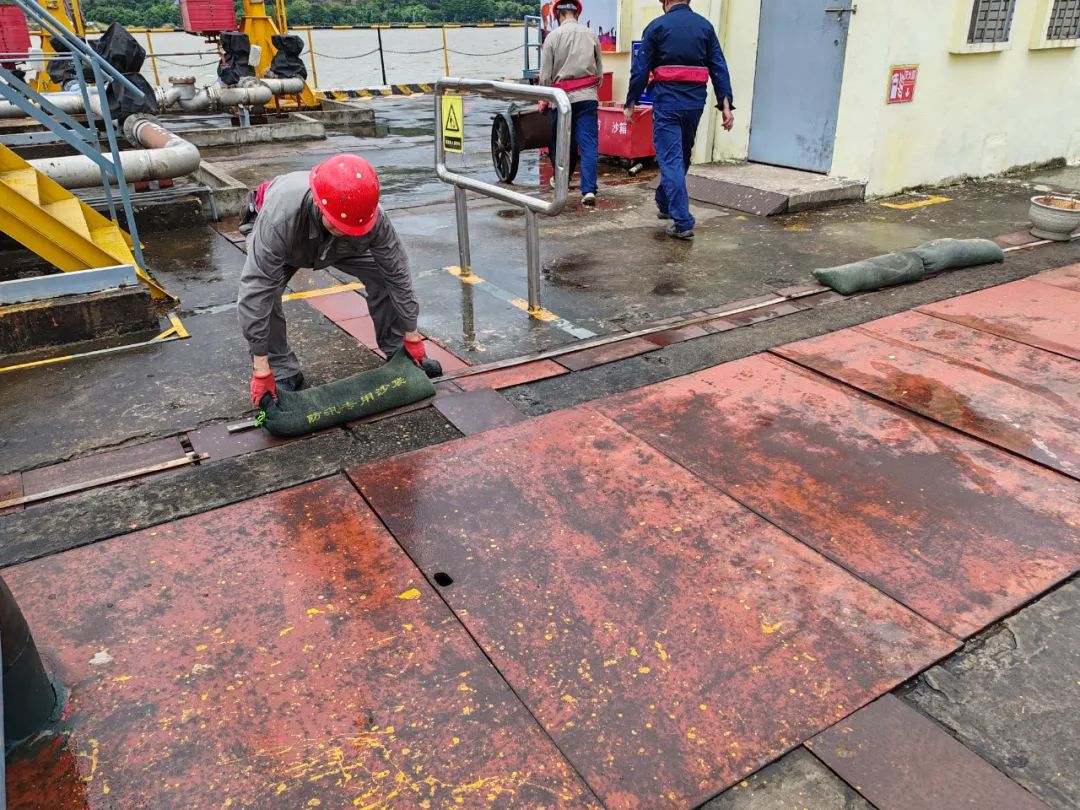 漳州新立基在防御台风工作部署会上,传达了福建港口集团和台商区有关台风响应通知精神,结合公司实际启动应急预案,组织人员到现场进行全方位检查、多角度排查、针对性督查,全面落实汛前预防工作。重点对基质沥青储罐顶人孔盖和生产区顶棚进行加固,严防高空坠物造成伤害;配备应急抽水泵,对排水沟的垃圾杂物,杂草树叶进行清理疏通,确保台风来临时排水系统通畅。
