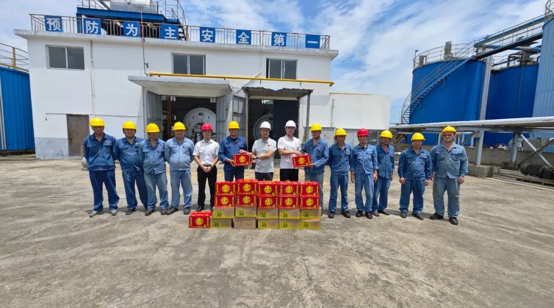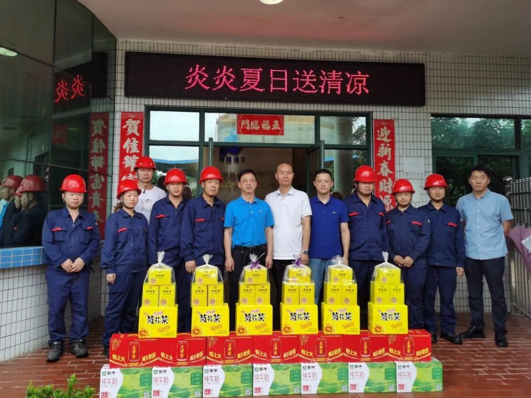 英国威廉集团官网党委委员、总会计师陈建林到吉安吉源公司开展“夏送清凉”活动,向坚守岗位的一线职工送去凉茶、牛奶等防暑降温物品,向员工传递一份清爽和关怀。