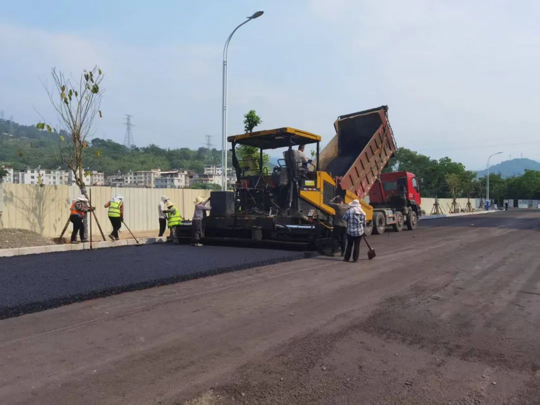作为龙岩新立基“首个”沥青路面施工项目,自开工以来,严格遵循市政道路建设规范,科学组织、精细施工。施工现场,沥青摊铺机与自卸卡车如同精密仪器的齿轮般协同运作,双钢轮压路机与胶轮压路机交替作业,轰鸣声与滚烫的沥青蒸汽交织成一曲“施工交响乐”,施工人员严格按照标准化工序实施摊铺、整平、碾压,确保沥青混凝土施工质量。