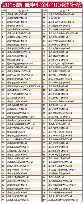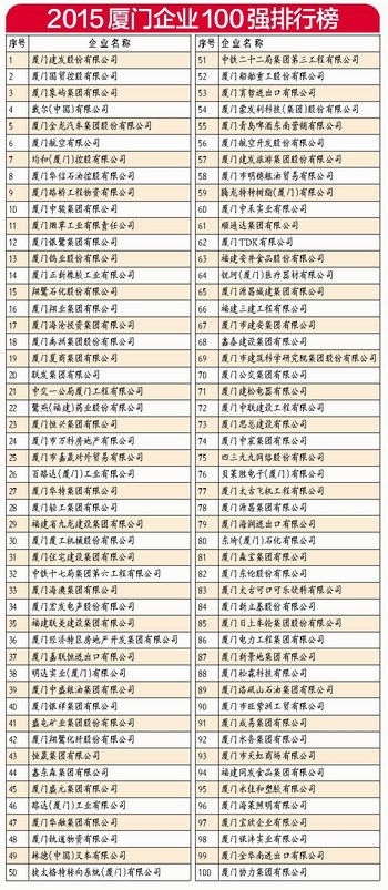 进入“2015厦门企业100强”榜单