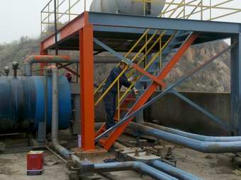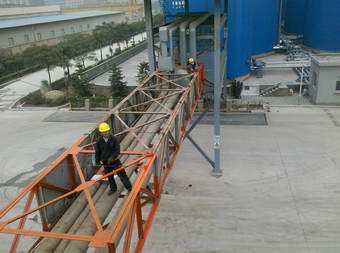 上图:管路过桥处除锈,上漆保养 下图:锅炉房顶部重油加热罐、高位槽及露天的平台管路除锈上漆保养(1.17)