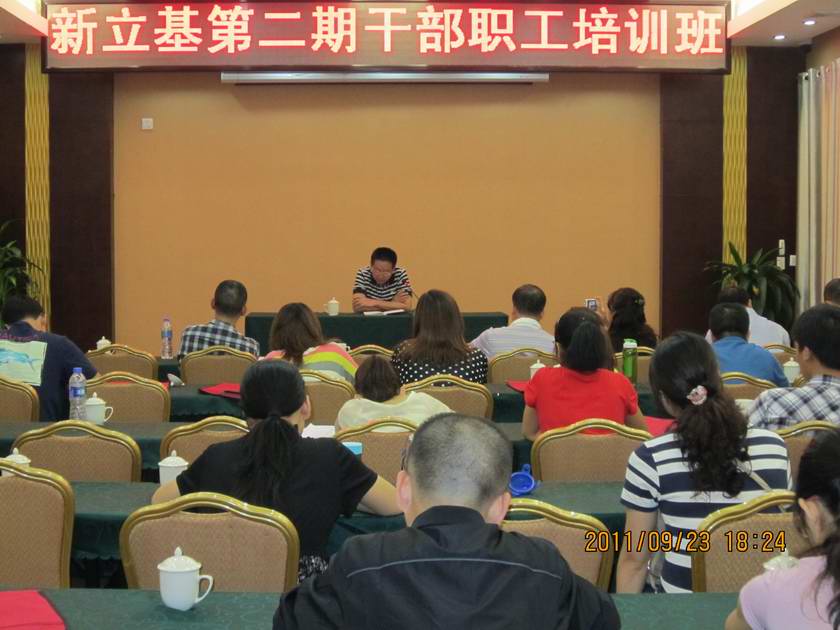 2011年9月20日至23日,新立基公司在龙佳山庄举办了为期四天的第二届干部职工培训班,为了使此次培训更具有针对性、实效性,公司领导精心准备,认真筛选培训内容。本次培训的内容有:“学习胡锦涛总书记七一讲话”、“安全知识培训”、“ISO9000知识培训”、“如何当好班组长、如何做一名合格的员工”、“如何当好中层干部及领导的方法与艺术”、“合同的签订、管理及诈骗防范”等等,这些内容不仅从理论上武装了员工的头脑,让他们的视野更开阔,思想更深邃,观念更新颖,并且在工作实践上也很具有指导性。