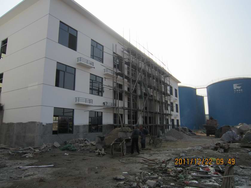 2011年7月11日角美库区办公楼宿舍楼正式开工,短短数月两座大楼拔地而起。为了给员工建造一个舒适、健康、全面的工作环境,公司领导特别重视办公楼宿舍楼的建设,每次来库必将查看楼房的建设进展情况。领导们一再要求一定要按时保质保量完成大楼的建设,要让员工在库区生活如在家一样过的舒心并爱护我们的公司,这样公司才能团结一致做大做强。近日,两座大楼建设正在进行装修,预计2012年元月10日前完工,另外库区的道路也在抓紧施工中。元月13日库区将以全新的面貌迎接前来参加迎新春联欢会的各位来宾!