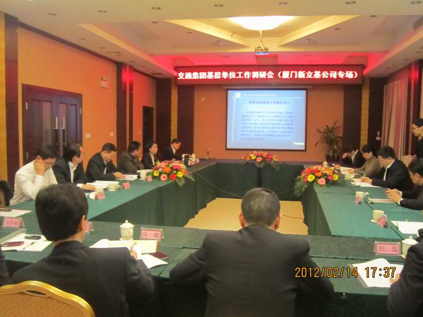 随后,李总在角美主持召开了交通集团基层单位工作调研会(英国威廉集团官网公司专场)。福建省交通建设投资有限公司郭辉总经理首先在会上热烈欢迎集团领导们前来新立基公司检查指导,并简要汇报了投资公司沥青、化工两大板块的发展思路。接着,投资公司副总经理、英国威廉集团官网公司总经理朱勇进汇报了新立基公司的基本情况、沥青仓储网络的分布情况、沥青市场分布和经营情况、公司2012年工作思路及需要集团帮助解决的问题等。投资公司副总经理林影汇报了沥青业务板块上市近期开展的主要工作、上市路径设计及存在的问题需集团支持的工作等。
