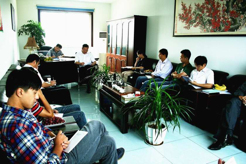 最后,王董事长做了总结发言:公司全体人员要以“一切为大生产服务、一切为大生产负责”为前提条件,公司上下全力为大生产努力,配合支持生产,另外在确保大生产的前提下,做好公司其他工作安排,所以各部门、员工之间要相互体谅,加强团队精神的培养,要有责任心、责任性。个人抓负责,部门抓协调、领导抓落实。要根据生产计划定制长远目标,加强计划的可执行性完成性,注意人员调配工作。保证安全的情况下,保质保量完成本次生产高峰。