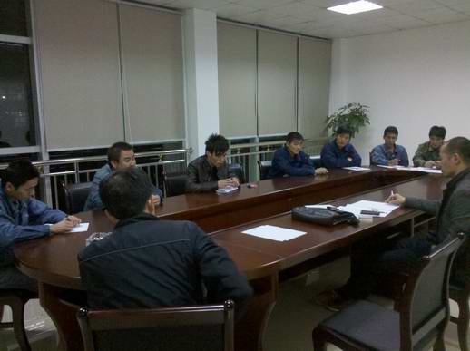 会上,叶总传达新立基2012年13号文件。要求新立基公司所属各部门员工都必须作好2012年年终工作总结(安全、岗位)。不谈成绩,只谈经验、不足,查找工作差距,提出改进措施。并在指定日期前上交材料。接着生产部员工对第四季度安全生产、产品质量进行分析,并逐个发言对本岗位工作进行个人评价、安全分析。从中找出工作中的不足之处,力求来年更好的完成领导安排的安全生产工作。
