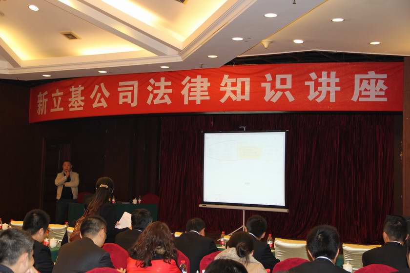 2013年1月24日下午,新立基公司在福州金仕顿酒店会议厅举办法律风险管理知识讲座。公司很荣幸地邀请到福建世礼律师事务所的涂建葵律师为员工进行讲座。参加讲座的有投资公司副总经理林影、投资公司各部门长及新立基公司全体员工。