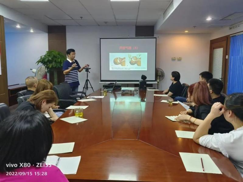 本次活动邀请到了福建医科大学附属第一医院急诊医学中心副主任医师江勇,为大家作《心肺复苏和保健》专题讲座,江勇老师采取专业理论授课和现场实操相结合的方式,重点围绕“心肺复苏的判断、评估、胸外按压、开放气道、AED(自动体外除颤仪)使用”等方面,进行全面系统的讲授,并在活动现场手把手指导职工进行心肺复苏、海姆立克急救等救护技能操作,让职工们不仅熟练掌握操作要领,还更加深刻地认识到救护的重要性和必要性。